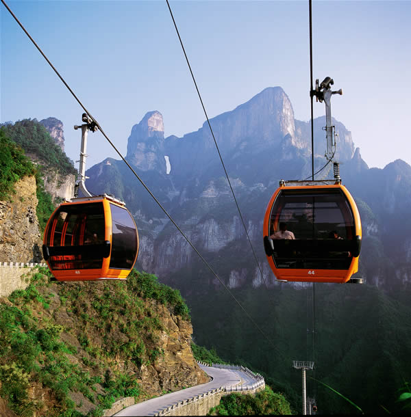 天門山國家森林公園距張家界市區(qū)南側(cè)約8公里,山頂南北寬1.93公里,東西長1.96公里,面積2.2平方公里,海拔1518.6,這里以發(fā)育較齊全的巖溶地貌區(qū)別于武陵源的砂巖峰林景觀,是一座四周絕壁的臺形孤山。