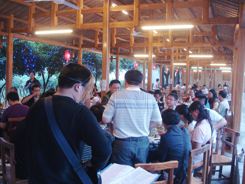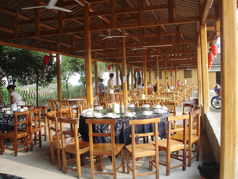 張家界武陵源大作坊美食城是一家集垂釣休閑,特色餐飲,夜市為一體的大型風(fēng)味美食城!位于風(fēng)景如畫的武陵源風(fēng)景區(qū)區(qū)政府所在地,占地3000多平方米,可同時(shí)容納400多人就餐。這里也是景區(qū)內(nèi)匯集土家美食,苗家美食的第一坊!美食城按純木四合院建造,內(nèi)設(shè)酒作坊,豆腐作坊,臘味作坊,糍粑作坊,有垂釣區(qū),燒烤區(qū),菜品自助區(qū),客人廚藝展示區(qū),農(nóng)產(chǎn)品展銷區(qū)等。酒作坊內(nèi)聘請(qǐng)了民間煮酒大師現(xiàn)場(chǎng)煮酒,你有機(jī)會(huì)可以現(xiàn)場(chǎng)吃到熱乎乎的頭鍋酒,酒坊內(nèi)有純米酒,包谷燒,高梁酒,有用野果泡制的各種果酒---燈籠酒,楊梅酒,彌猴桃酒等,更有特色的是把高梁酒放在正在生長的楠竹內(nèi),用竹內(nèi)竹膜的香味把酒增香,十二天就把竹子砍下再放養(yǎng)三天就好了,客人要吃現(xiàn)場(chǎng)鋸竹筒酒吃!豆腐坊也是聘請(qǐng)民間老農(nóng)現(xiàn)場(chǎng)用自制的石磨做豆腐,在這里你可以吃到真正有豆香味的原汁原味的石磨豆腐,和渣,菜豆腐,豆腐腦等豆制品!臘味作坊里有冬天用各種香料熏制的正宗湘西藏臘肉,臘豬頭肉,臘香腸,臘豬腳,各種臘制品臘野味等。糍粑坊每天在晚上人多用餐高峰時(shí)現(xiàn)場(chǎng)打滋粑,客人也可以自己參與打糍粑這個(gè)快樂的過程,想受過年時(shí)才有的熱鬧情景!在垂釣區(qū)里我們放養(yǎng)有很多野生魚類,有時(shí)間了你可以來這里休閑垂釣,得到的魚我們就會(huì)給你現(xiàn)場(chǎng)加工,有清沌的,紅燒的,青椒燜的,酸湯的,都很好吃哦。燒烤區(qū)里,我們高薪聘請(qǐng)了燒烤大師為你現(xiàn)場(chǎng)制做,你也可以自己動(dòng)手,有烤羊排羊腿,各種串烤,烤全魚,烤全兔等,還有各種鐵板烤可以自己炒著吃!菜品自己選區(qū)里有各種山野菜,壇子菜,干菜,臘味等,有各種鮮活的魚類,河蛘,水魚,田螺,龍蝦等,有各種農(nóng)家的土雞土鴨等,有各種鮮活的野味等你來享受美味呢!客人廚藝展示區(qū)里老板特設(shè)制地幾口大鍋, 很有特色的是, 你可以自己親自下廚, 酸甜苦辣任您自由調(diào)配 。 煮好了, 大家就圍著這“灶臺(tái)”合一的飯桌享受張家界的美食了。(張家界的三下鍋是很有特色的,是邊煮邊吃的, 只是這“三下鍋”是“大型三下鍋”而已。到張家界旅游,吃張家界的“三下鍋”是一種獨(dú)有的旅游體驗(yàn),到大作坊吃“大型三下鍋”,則更將會(huì)為你的旅程增添一份難得的回味。農(nóng)產(chǎn)品展銷區(qū)里展示著當(dāng)?shù)鼗蛳嫖鞯貐^(qū)最暢銷的農(nóng)產(chǎn)品食品:正宗湘西鄉(xiāng)里臘肉,香腸,各種臘制品,洗車河霉豆腐,靈潔牌剁椒辣醬系列,菌油,正宗茶籽油,苗家酸湯,鄉(xiāng)里正宗葛粉,大壇湘西五糧液,竹簡敲敲酒,張家界茅巖霉茶,野生蜂蜜,高山葛粉,張家界第一山珍巖耳,葛根片等等!
