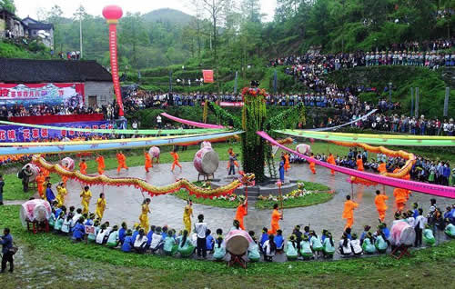 鮮麗奪目的苗族服飾,情調別致的攔門酒,風格獨特的卡鼓、攔路歌、邊邊場,會使你耳目一新,如癡如醉;還有傳統(tǒng)節(jié)日"四月八"的跳月跳花,"六月六"的山歌對唱,又會使您心動神搖,嘆為觀止。
