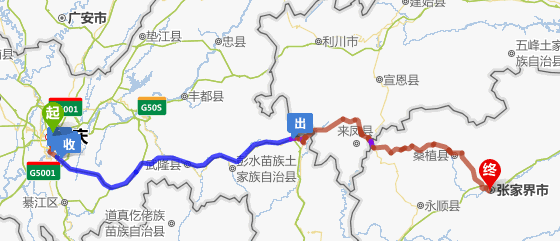 重慶去張家界自駕車線路圖【全程高速:推薦