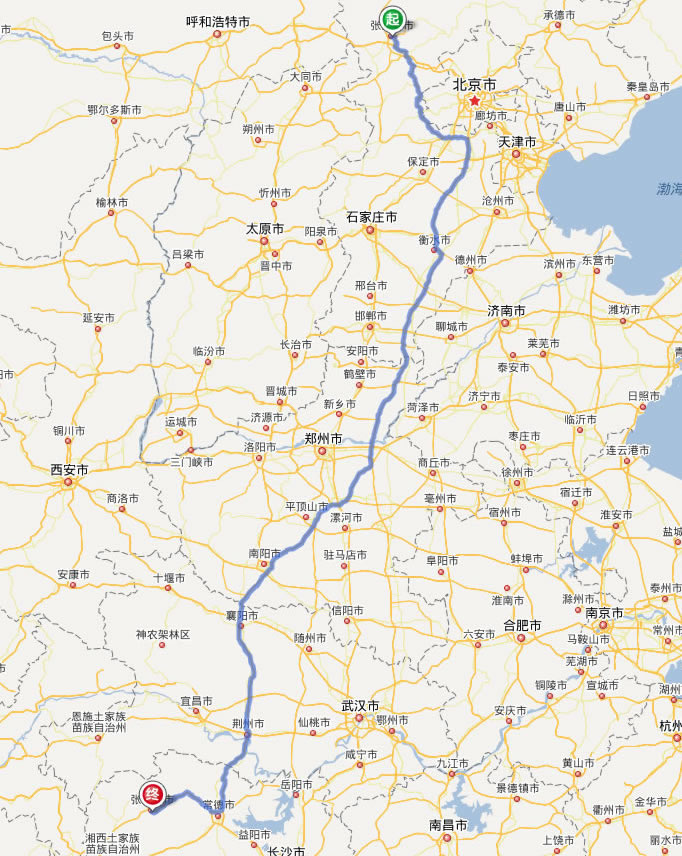 張家口去張家界自駕車(chē)線路圖全程高速):