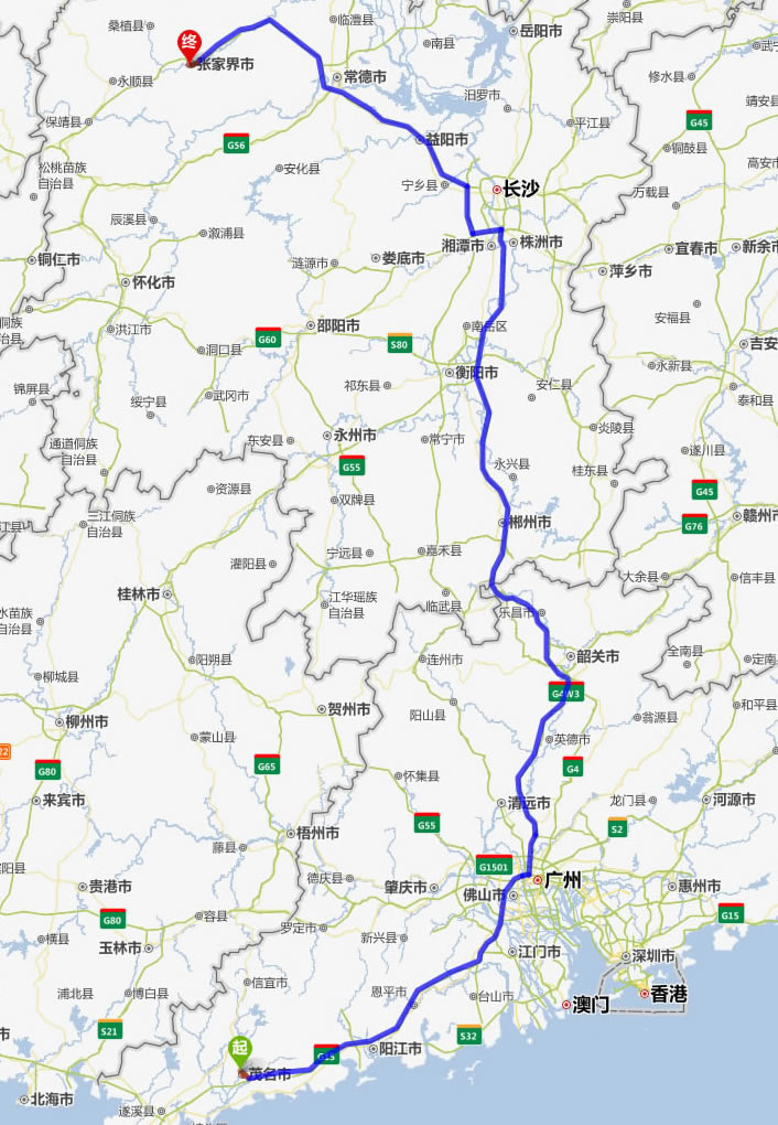 現(xiàn)在位置:張家界旅行社->交通指南->自駕車路線 -> 茂名到張家界旅游自駕車線路,茂名去張家界自己開車要多長時(shí)間,有多少公里