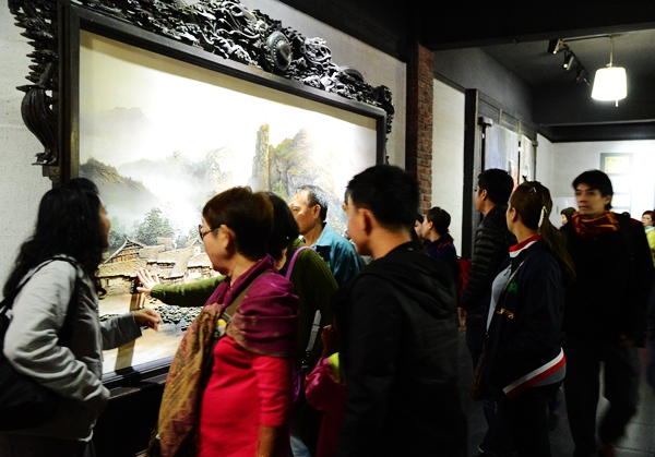 一批馬來西亞客人在參觀砂石畫