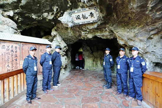 保護(hù)重于利用,開放服從保護(hù)。4月16日一大早,筆者在黃龍洞景區(qū)看到,一支英姿颯爽的保安隊(duì)伍邁向洞內(nèi)各自指定的崗位。