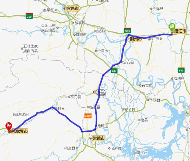 現(xiàn)在位置:張家界旅行社->交通指南->自駕車路線 -> 潛江到張家界旅游自駕車線路-潛江市去張家界自己開車要多長時間,有多少公里