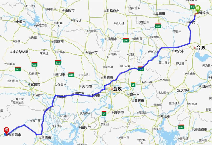 蚌埠去張家界自駕車(chē)自助游線路圖全程高速):