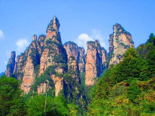 上 午:早餐后自駕車前往中國(guó)第一個(gè)國(guó)家級(jí)森林公園——【張家界國(guó)家森林公園】(約40分鐘車程,門(mén)票245元+5元景區(qū)保險(xiǎn)已含)。游覽大氧吧廣場(chǎng)(每立方厘米空氣中含8-10萬(wàn)個(gè)負(fù)氧離子),登海拔1200米、張家界最大的凌空觀景臺(tái)——【黃石寨景區(qū)】(黃石寨可以乘索道上下,也可以徒步上下。如果選擇乘坐索道,單程65元/人、雙程118元/人自行購(gòu)買)。黃石寨山頂千山萬(wàn)壑盡收眼底,沿著山頂環(huán)寨游道行走,可欣賞到許多絕美的自然風(fēng)光,沿途有六奇閣、摘星臺(tái)、雙門(mén)迎賓、五指峰、霧海金龜、天然壁畫(huà)、黃石松、回音壁、九重壁等景點(diǎn);